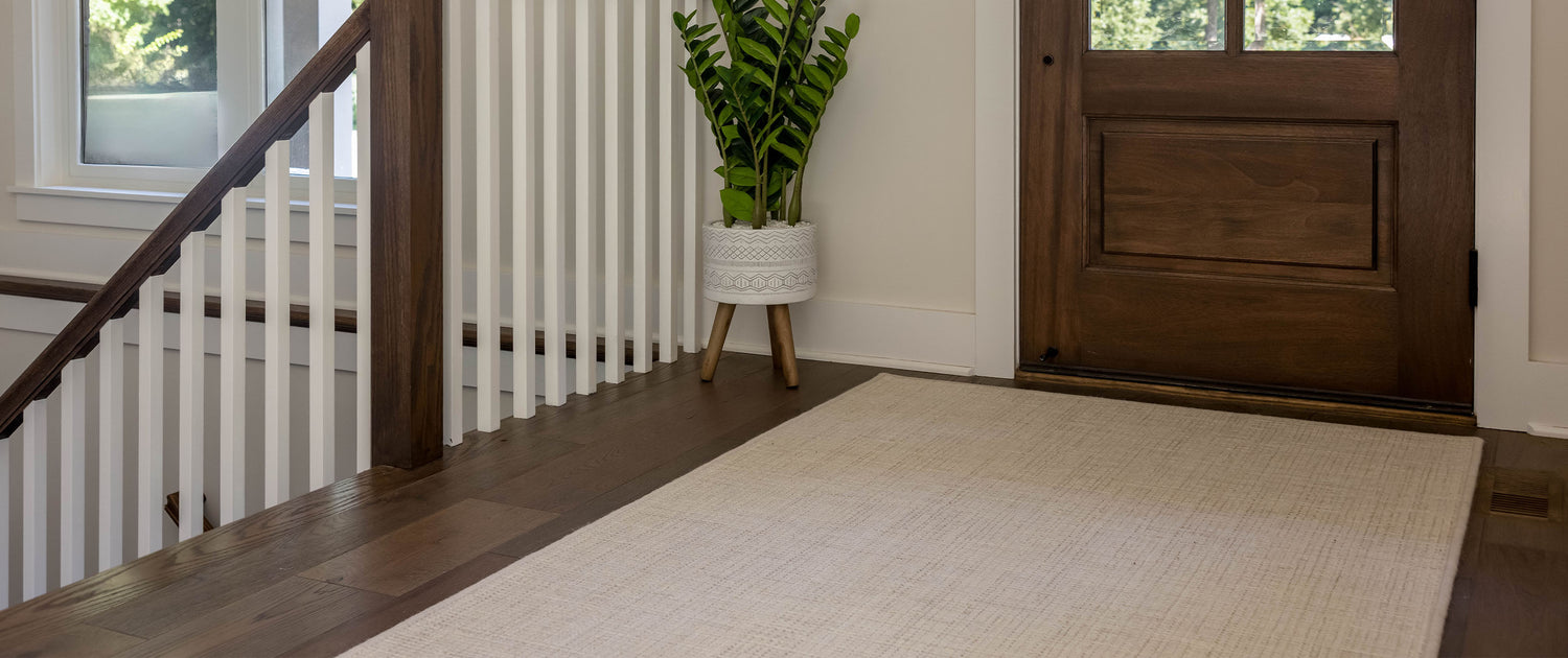 - Most entryway rugs allow for 18” of bare floor between rug and walls. Smaller entryways are limited to the width of the door.