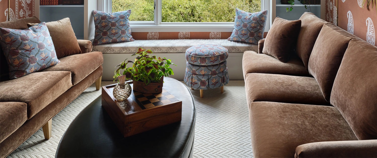 • Furnishings should sit partially or completely on the rug, while still allowing ample space to move in and out of the area. This usually means allowing 18”-24” of space between sofa and chairs or sofa and coffee table.
