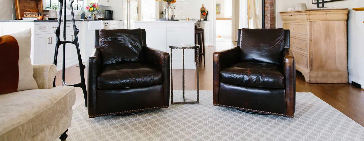- Furnishings should sit partially or completely on the rug, while still allowing ample space to move in and out of the area. This usually means allowing 18”-24” of space between sofa and chairs or sofa and coffee table.