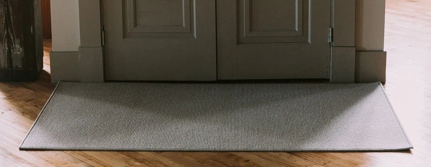 - Most entryway rugs allow for 18” of bare floor between rug and walls. Smaller entryways are limited to the width of the door.