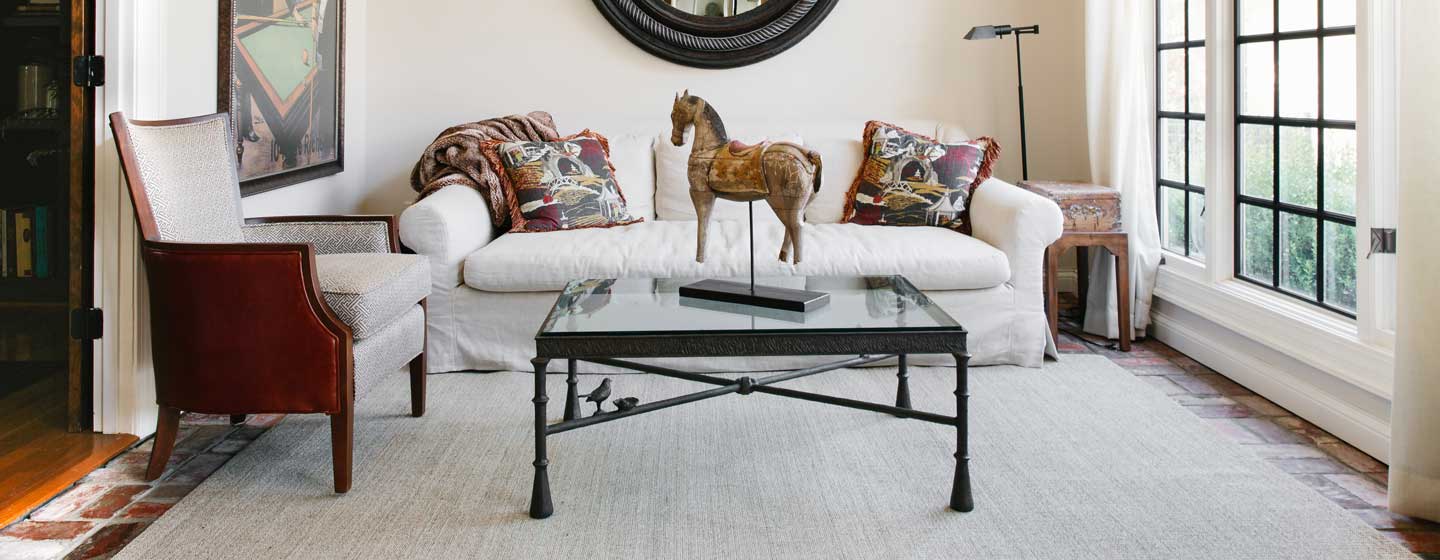 • In open floor plans, a custom rug can help define the sitting area.