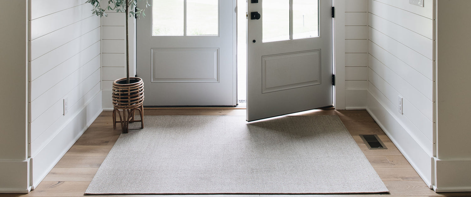 - Most entryway rugs allow for 18” of bare floor between rug and walls. Smaller entryways are limited to the width of the door.