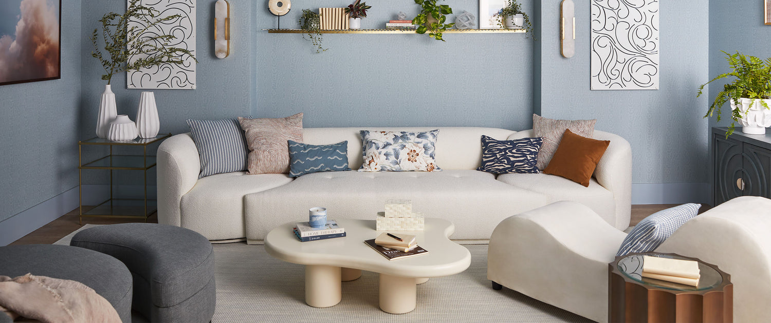 - Furnishings should sit partially or completely on the rug, while still allowing ample space to move in and out of the area. This usually means allowing 18”-24” of space between sofa and chairs or sofa and coffee table.