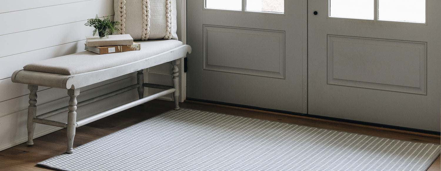 - Most entryway rugs allow for 18” of bare floor between rug and walls. Smaller entryways are limited to the width of the door.
