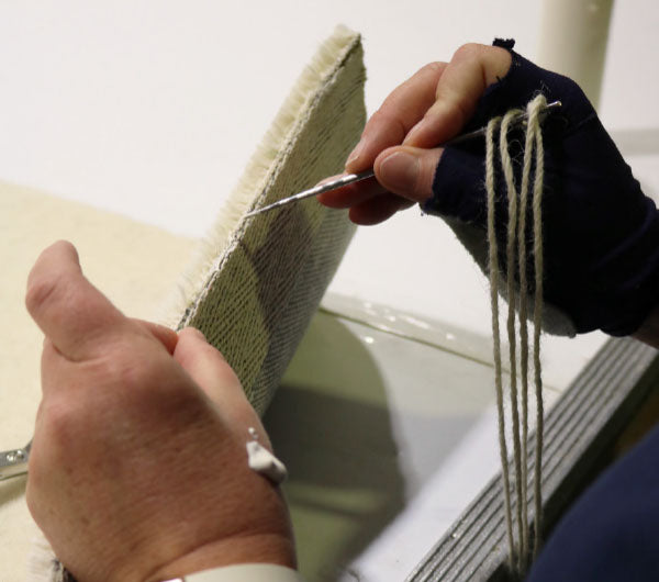 Complete the handmade process with hand serging, a perfect blend of art and craftsmanship. Hand serging gives rugs an elegant infinity-edge appearance. Each hand serged rug is a work of passion and time-honored tradition. Meticulously crafted by skilled artisans, it’s more than a rug, it’s an heirloom in the making.
