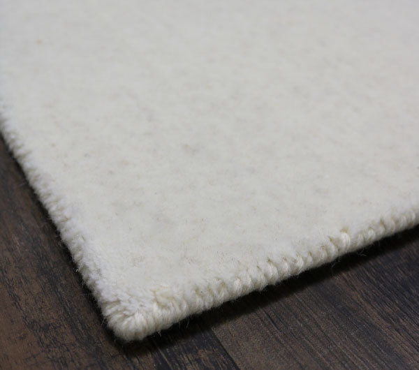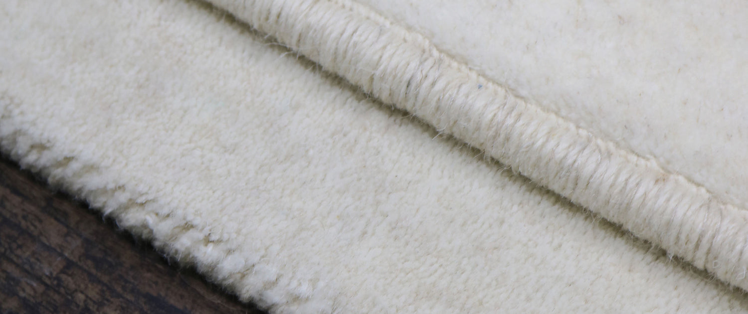 Serging offers a simple, classic look achieved by a continuous wrap of yarn around the edges of the rug. Coordinating yarns complement each rug field for a perfect minimal finish.