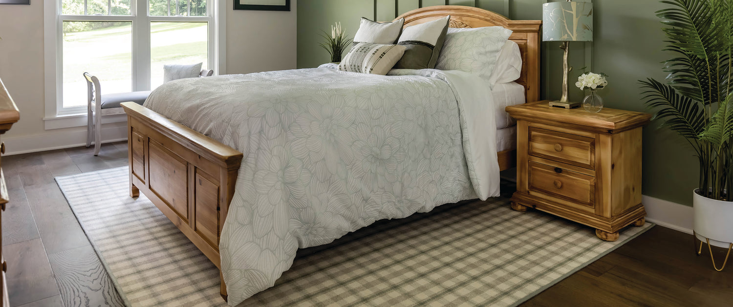 - Place the rug under at least 2/3 of the bed and allow the rug to cover 30”-36” on each side and the foot of the bed.